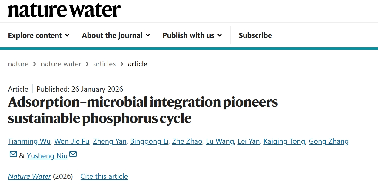 牛玉生教授团队在Nature Water发表题目为“Adsorption-Microbial Integration Pioneers Sustainable Phosphorus Cycle”的研究成果,该成果揭示了微生物在环境生态修复领域的重要作用。青岛大学博士研究生吴天明为论文的第一作者,牛玉生教授为通讯作者,清华大学张弓研究员为共同通讯作者,青岛大学为第一单位和通讯单位。
