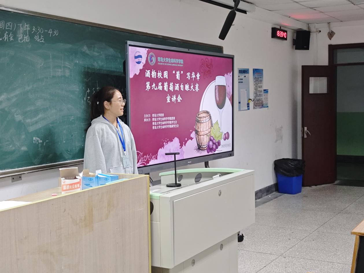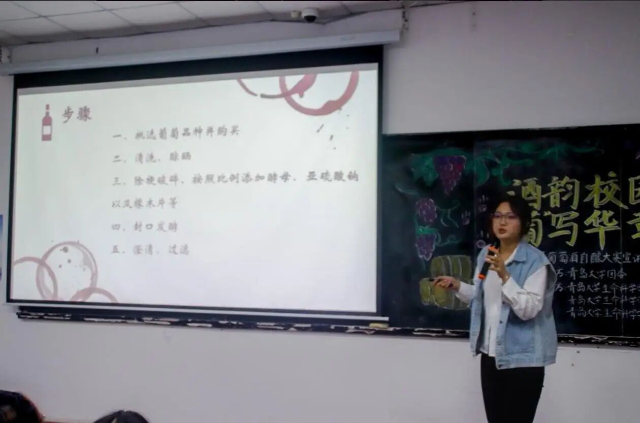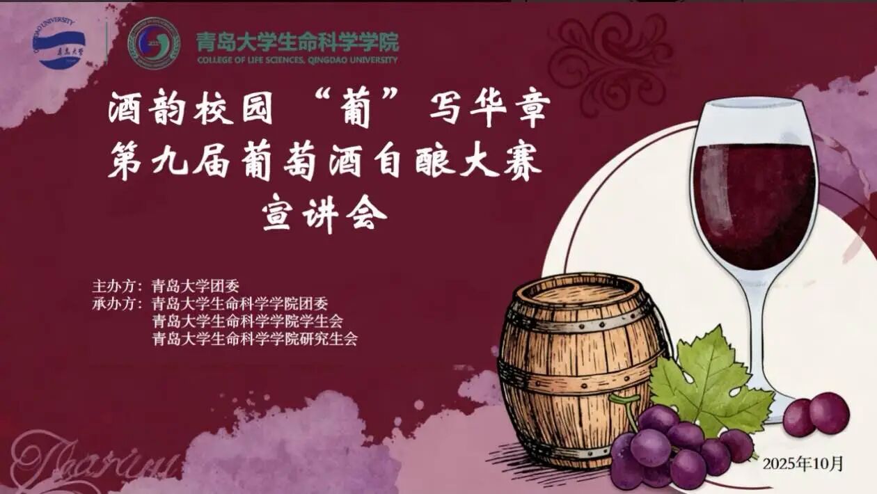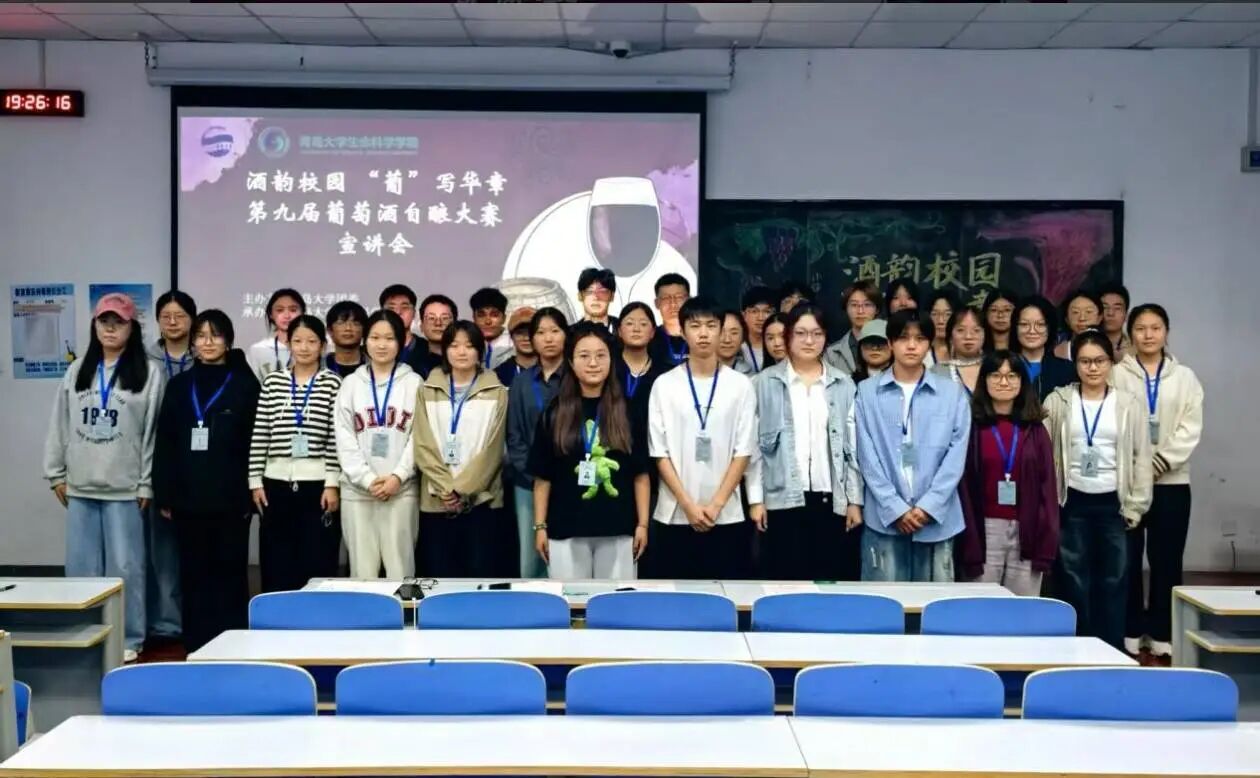 学生会执行主席柴会轩、执行主席韩杰、执行副主席李兴超、执行副主席艾迪娜·阿地力。同时,活动特邀第八届葡萄酒自酿大赛二等奖获得者2023级生物技术专业王静静与2024级生物技术专业滕若溪为本届赛事作详细讲解。青岛大学各级在校生积极参与本次宣讲会,宣讲会由2025级志愿者董俊言主持。